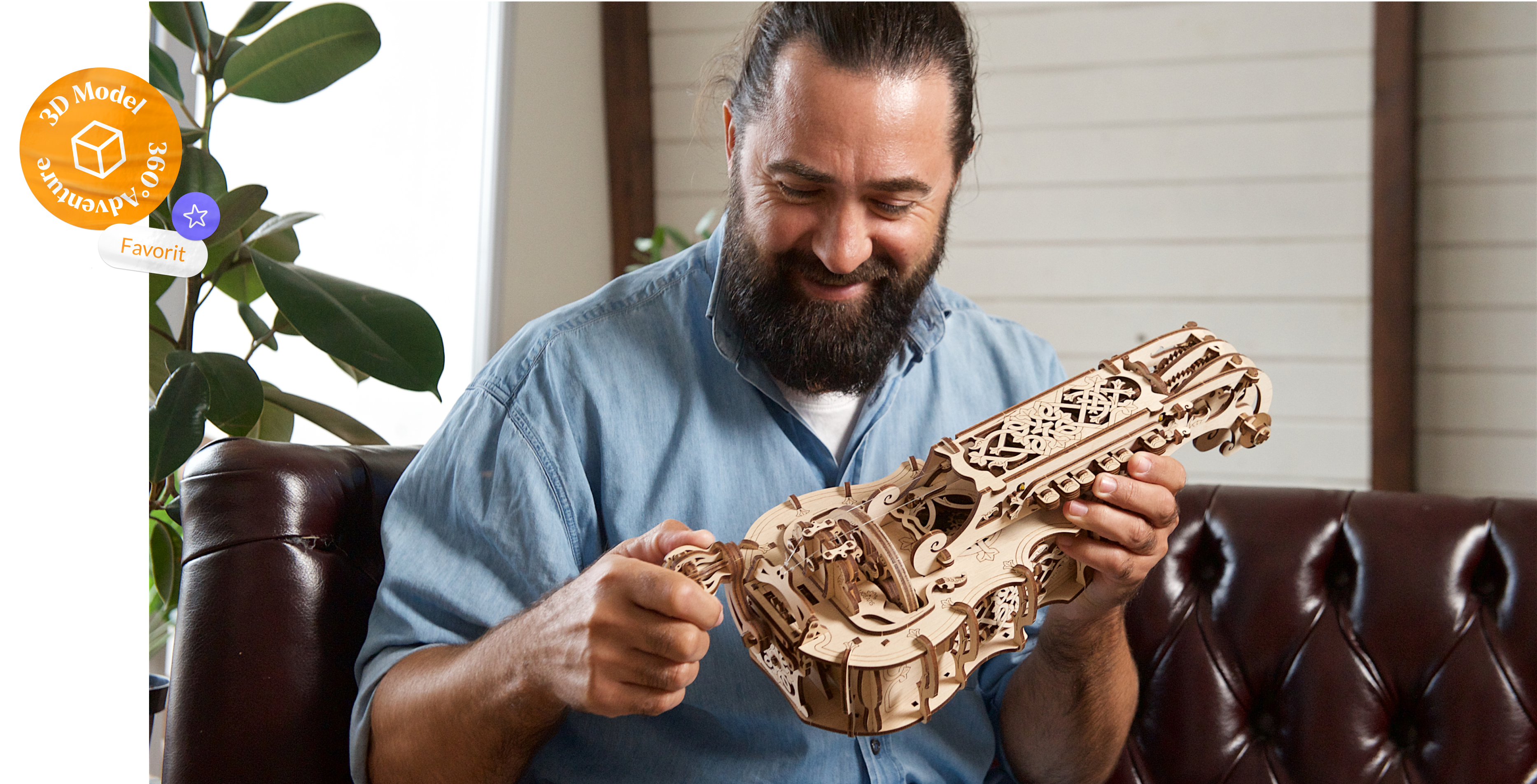 Einzigartige Mechanik und ausgetüftelte Ingenieurskunst sorgen für Faszination beim Aufbauen unserer 3D Holzpuzzles.